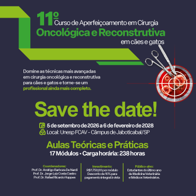 XI CURSO DE APERFEIÇOAMENTO EM CIRURGIA ONCOLÓGICA E RECONSTRUTIVA EM CÃES E GATOS